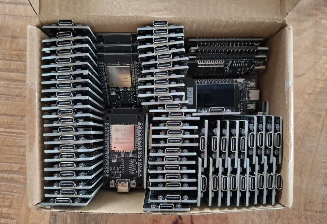 We bought a few dozen esp32s from a manufacturer at first, to experiment with them and let the team gather data within our platform.