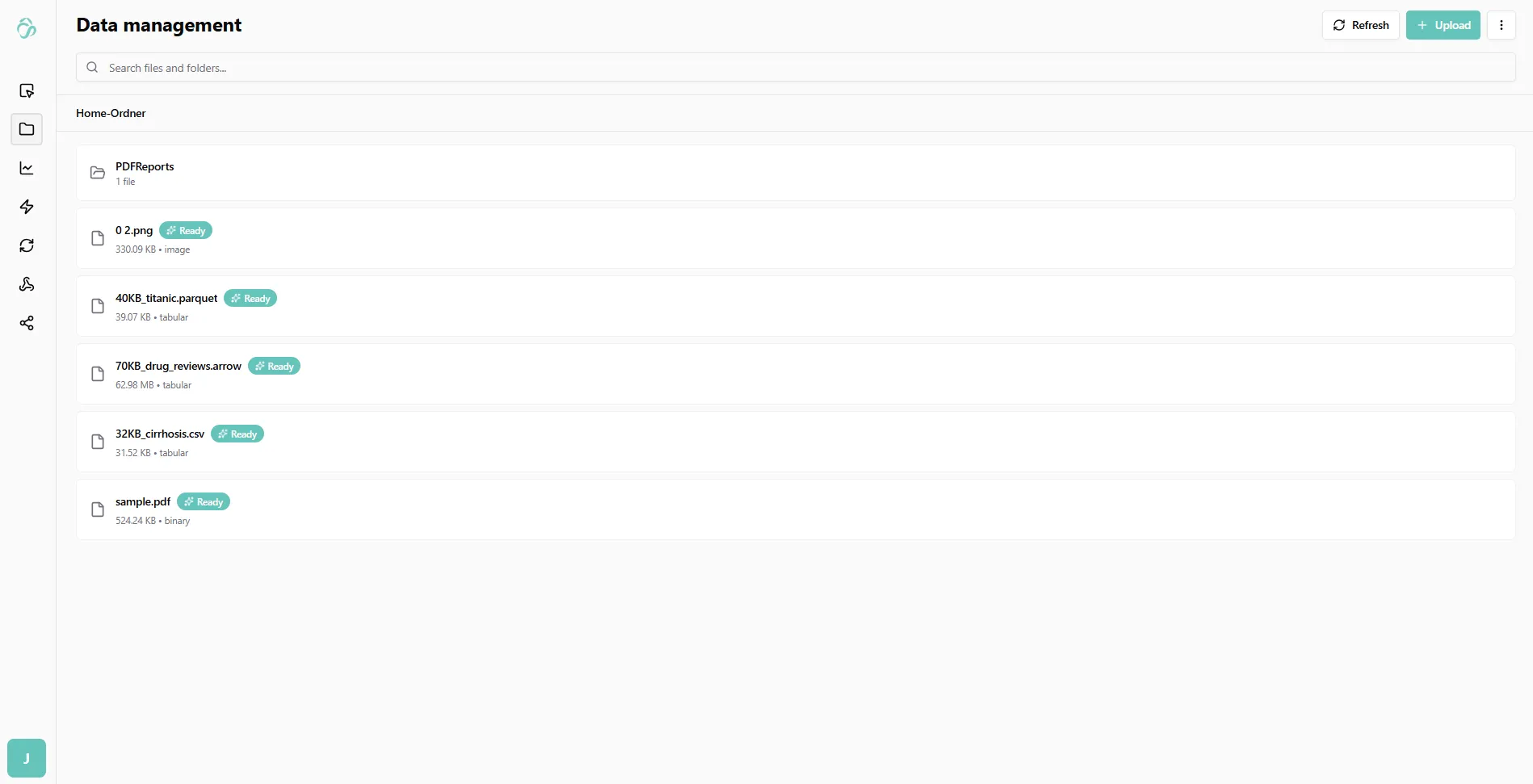 Store, preview, sync data securely with big data capabilities. The file manager module is where you upload your data before feeding it into your data flow.