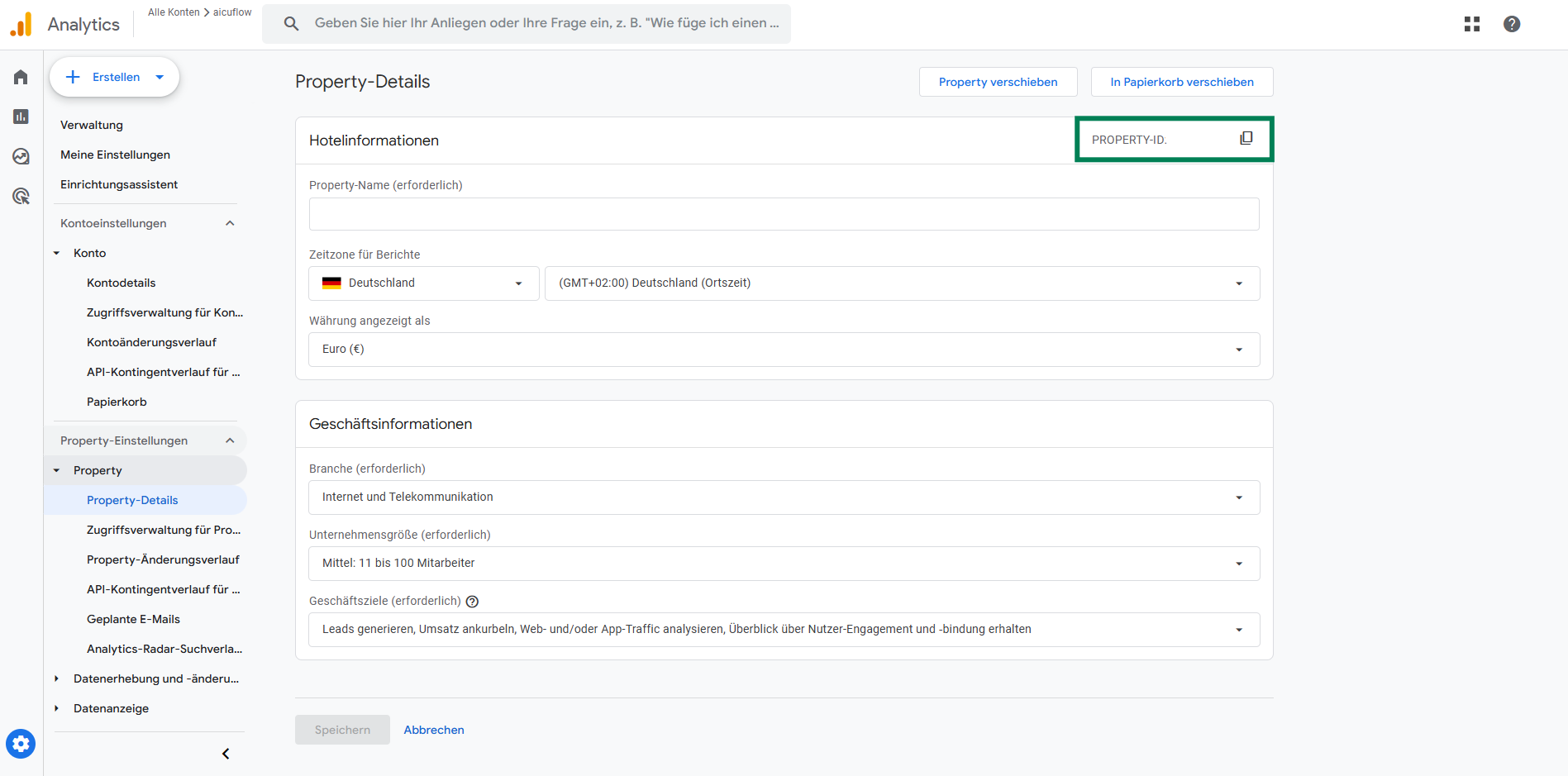 - Your Property ID is the numeric ID displayed at the top right of the page — copy it