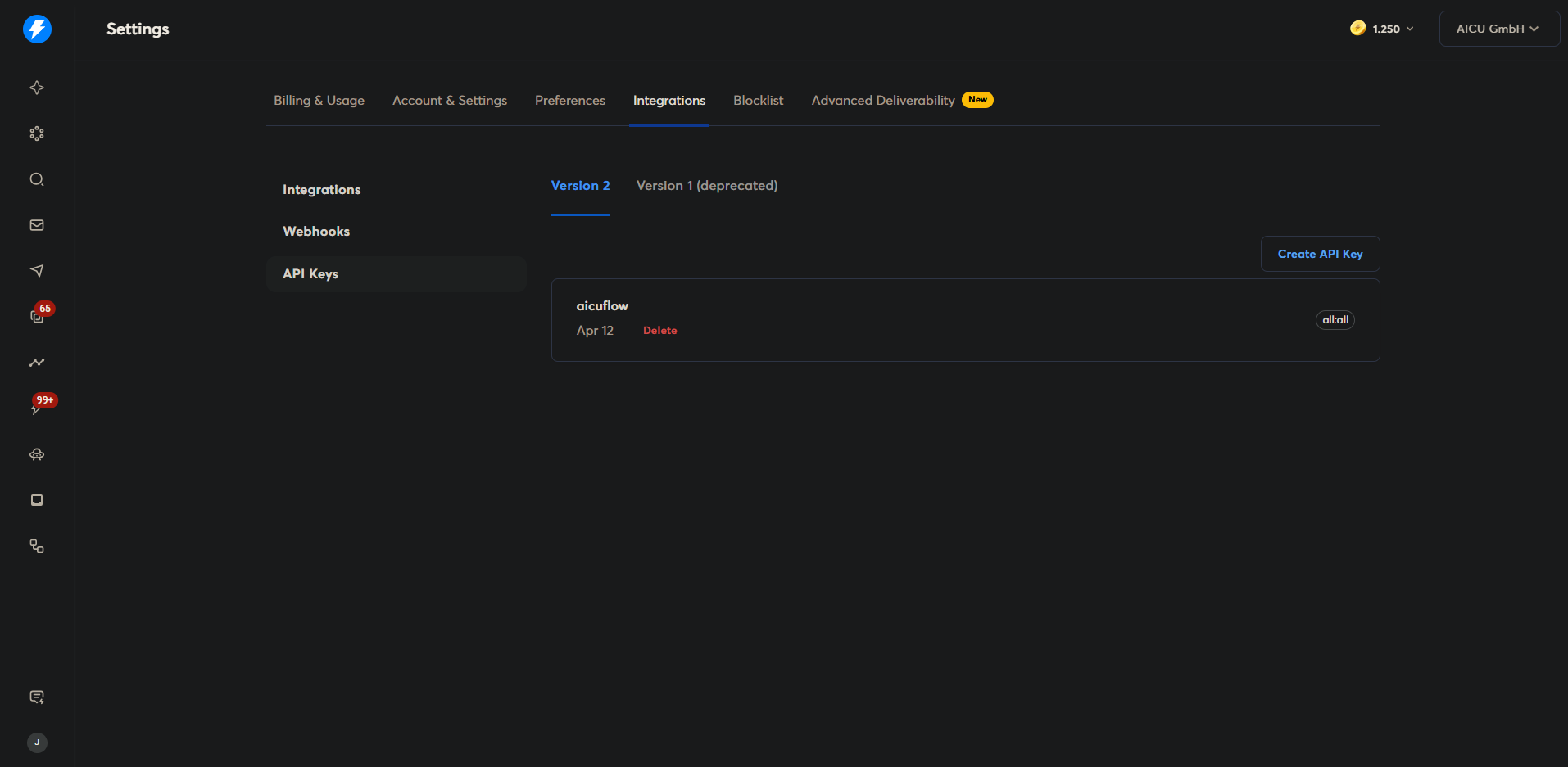 3. Create an API Key in Instantly