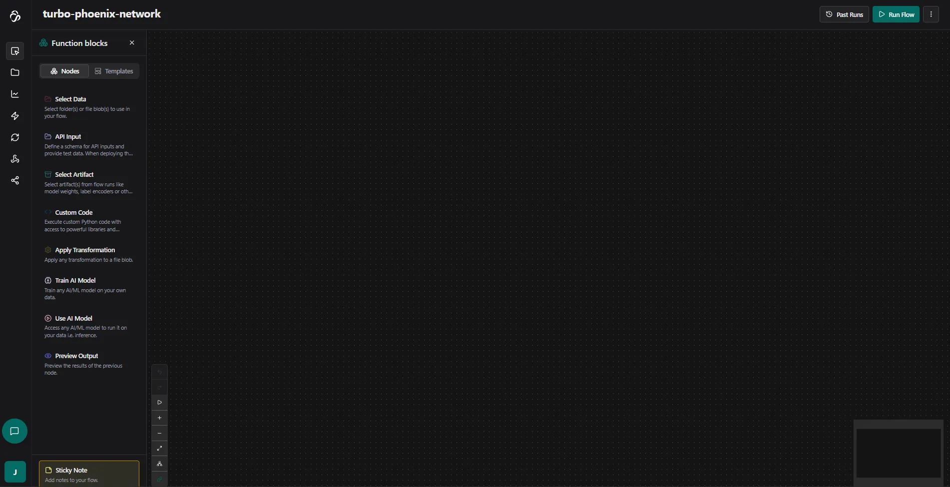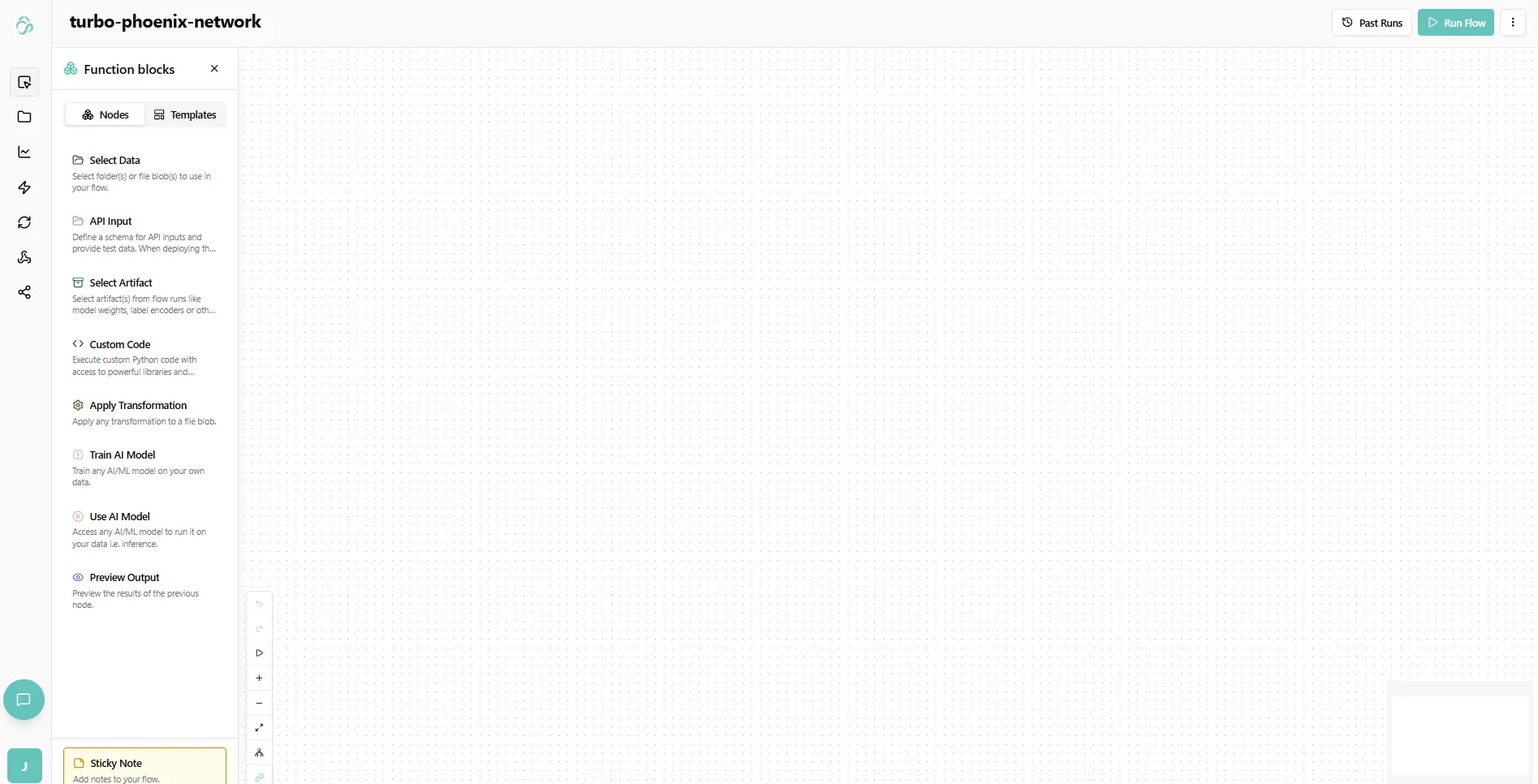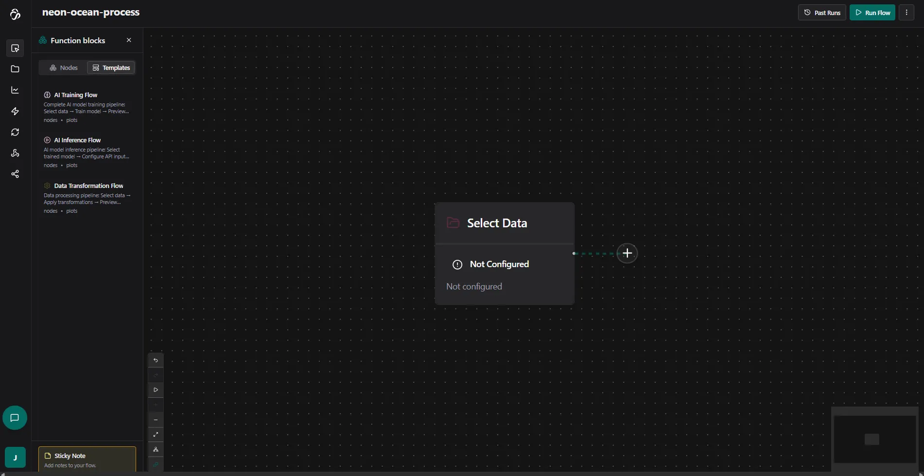 The Flow Editor is a visual, no-code/low-code tool for building powerful data pipelines and automation workflows. With pre-built blocks and AI assistance, you can create complex data processing and AI workflows without writing code.