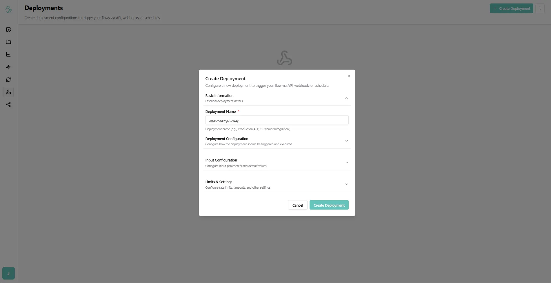 - API Input: Define an input schema and test data for deployed flows