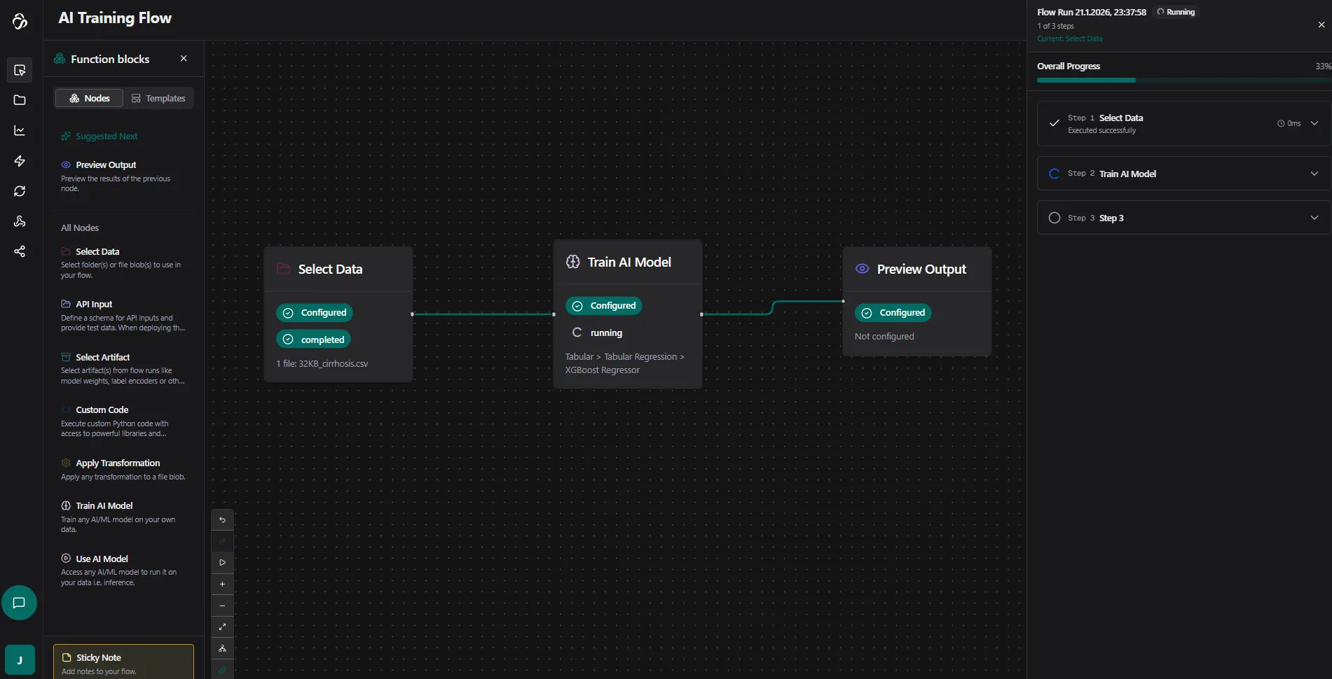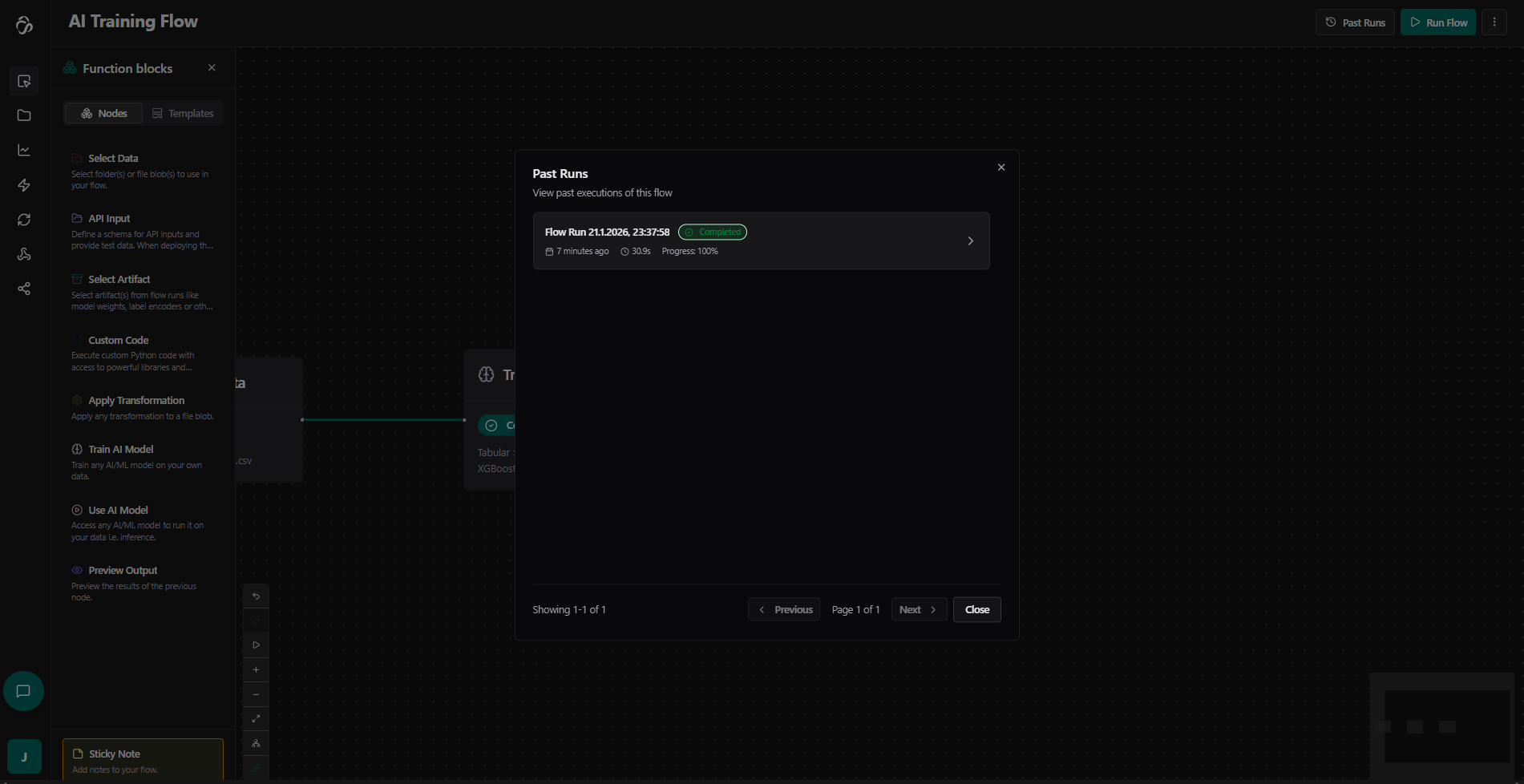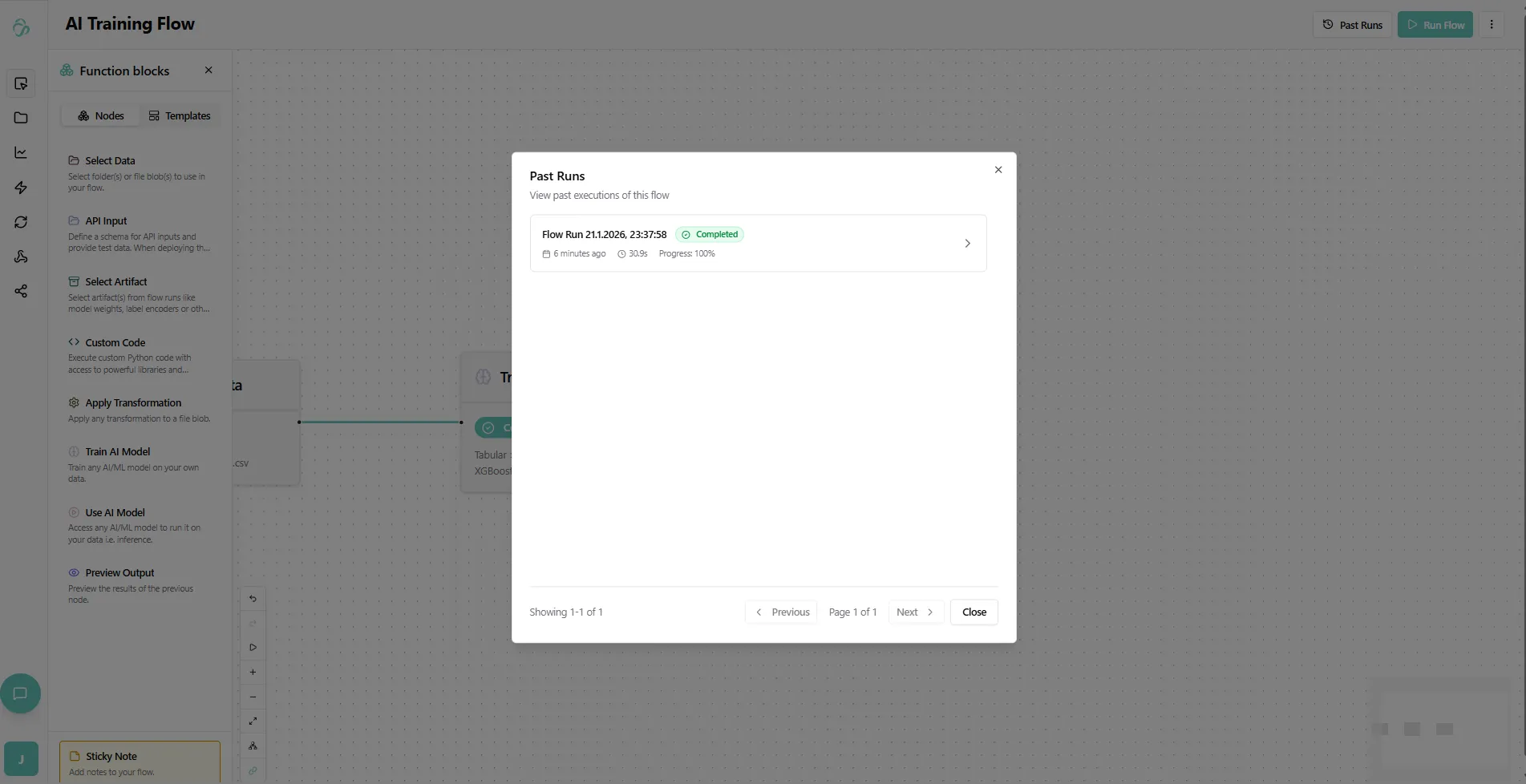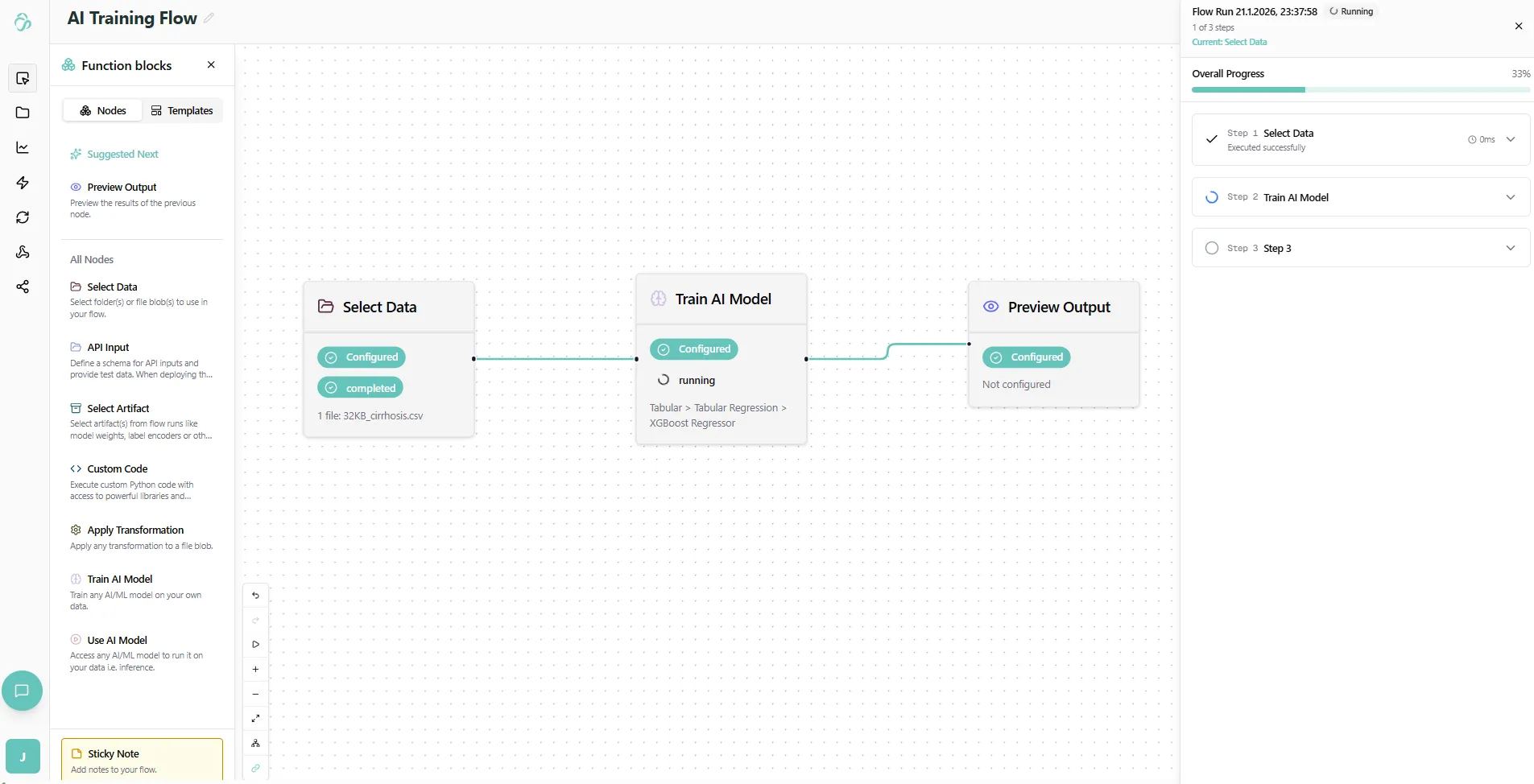 - Select Artifact: Load model weights, encoders, and other saved outputs from previous runs