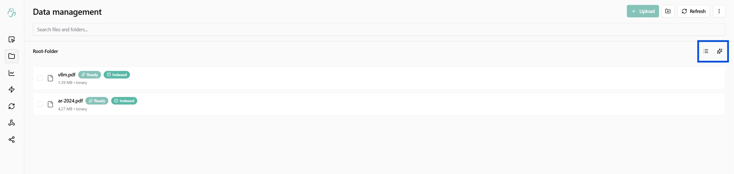 You can see the status of each file in real time. A file shows Indexed once its chunks are stored and its entities are extracted.