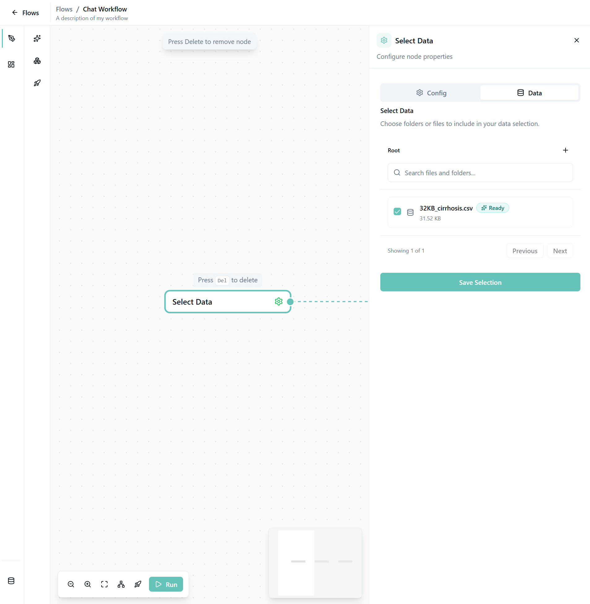 Click on the Select Data node. You can skip the configuration for now and directly open the Data tab.