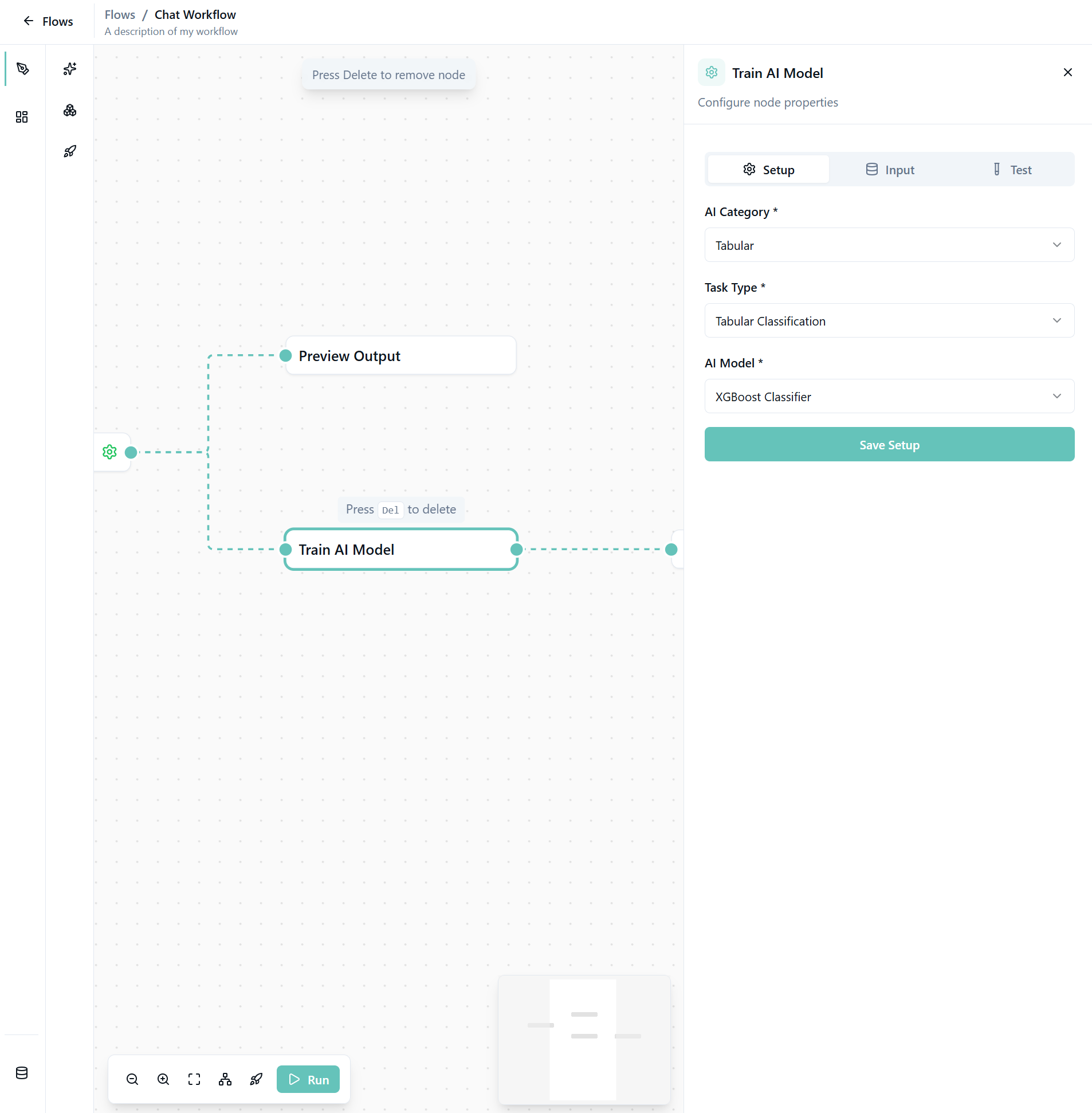 Train custom AI models directly in the Flow Editor using your own data. This guide walks you through the complete process of setting up, configuring, and training an AI model.