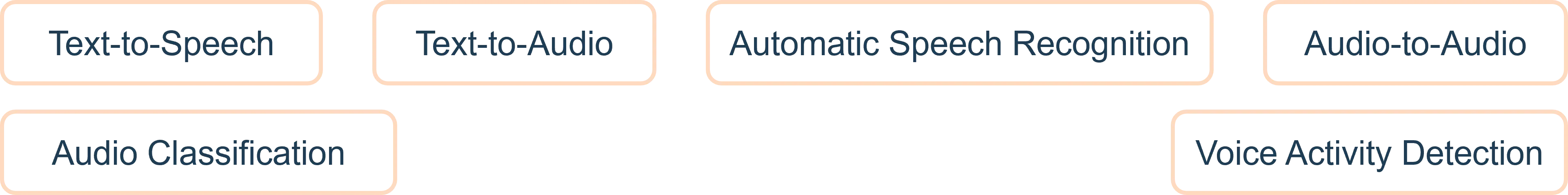 - Audio-to-Audio: Transform or enhance audio signals