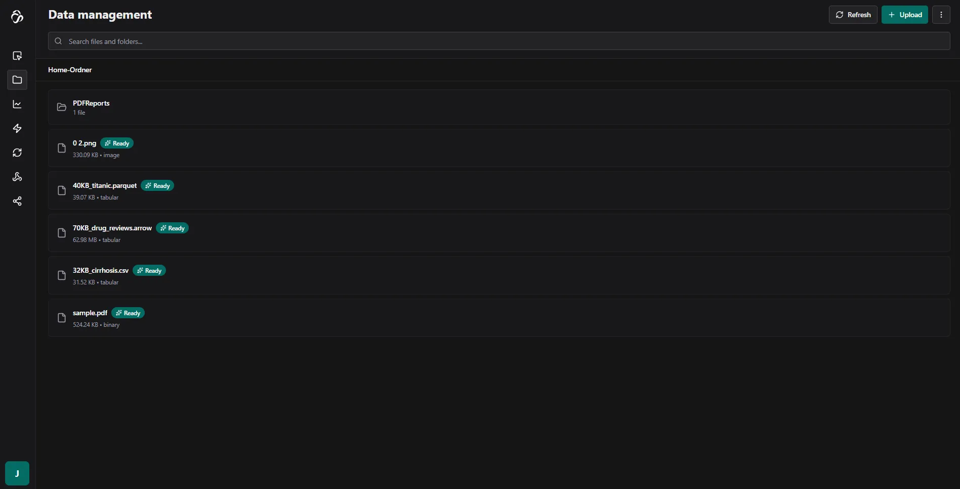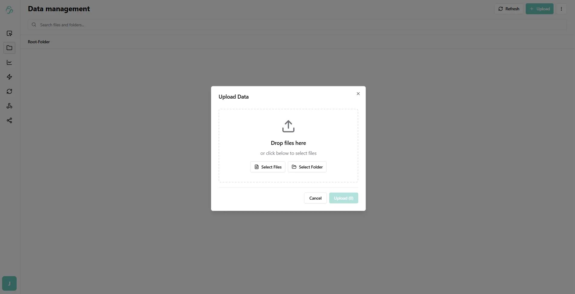 Store, preview, sync data securely with big data capabilities. The file manager module is where you upload your data before feeding it into your data flow.
