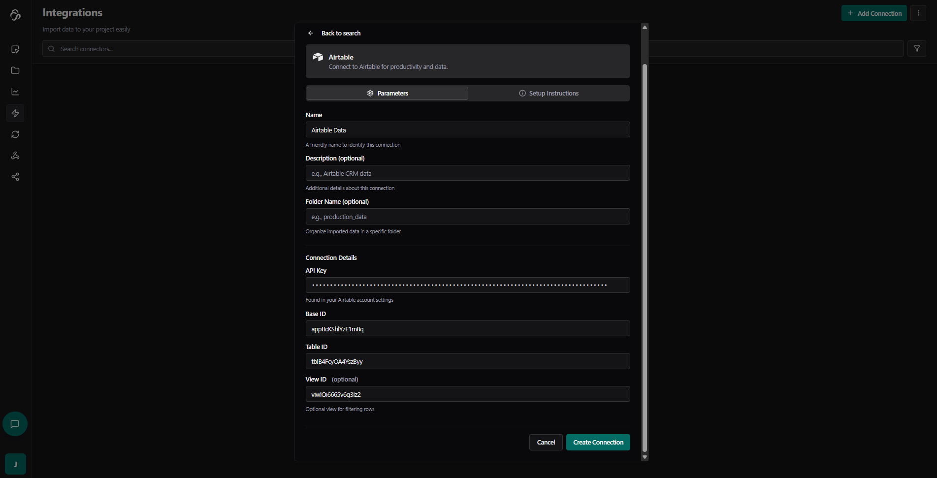 For this example, we'll connect to Airtable.