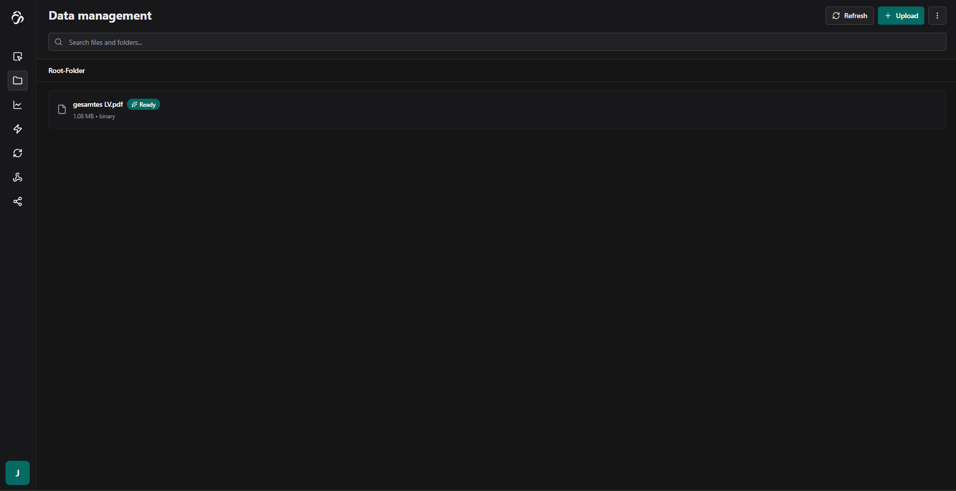 Once processing is complete, you'll see the status as "ready". The file will now be available for selection throughout the tool - in plots, flows, and for previewing.