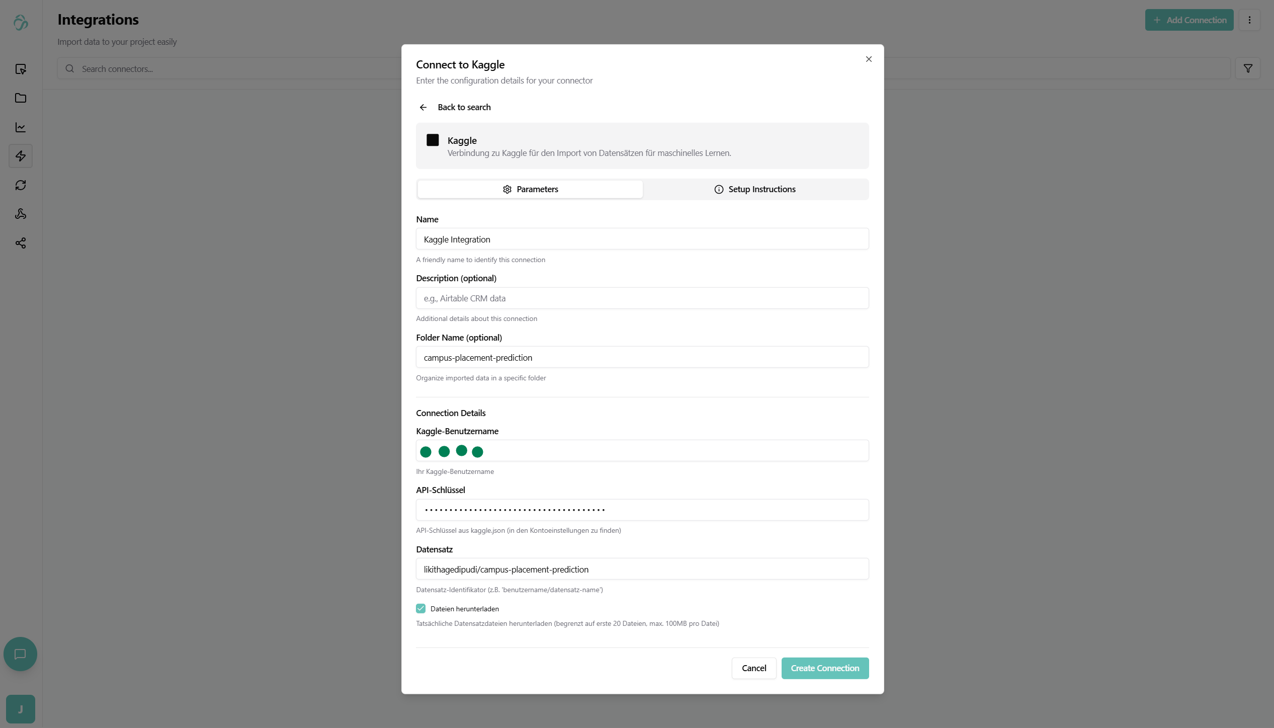 - Connector Name: Give your connector a descriptive name (e.g., "Kaggle Datasets")