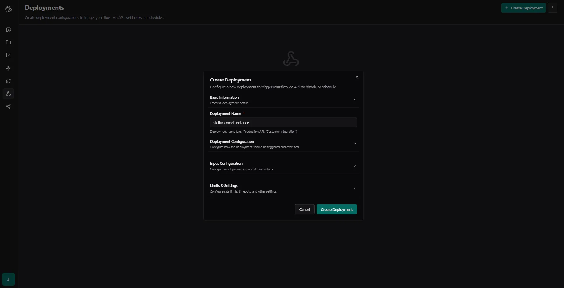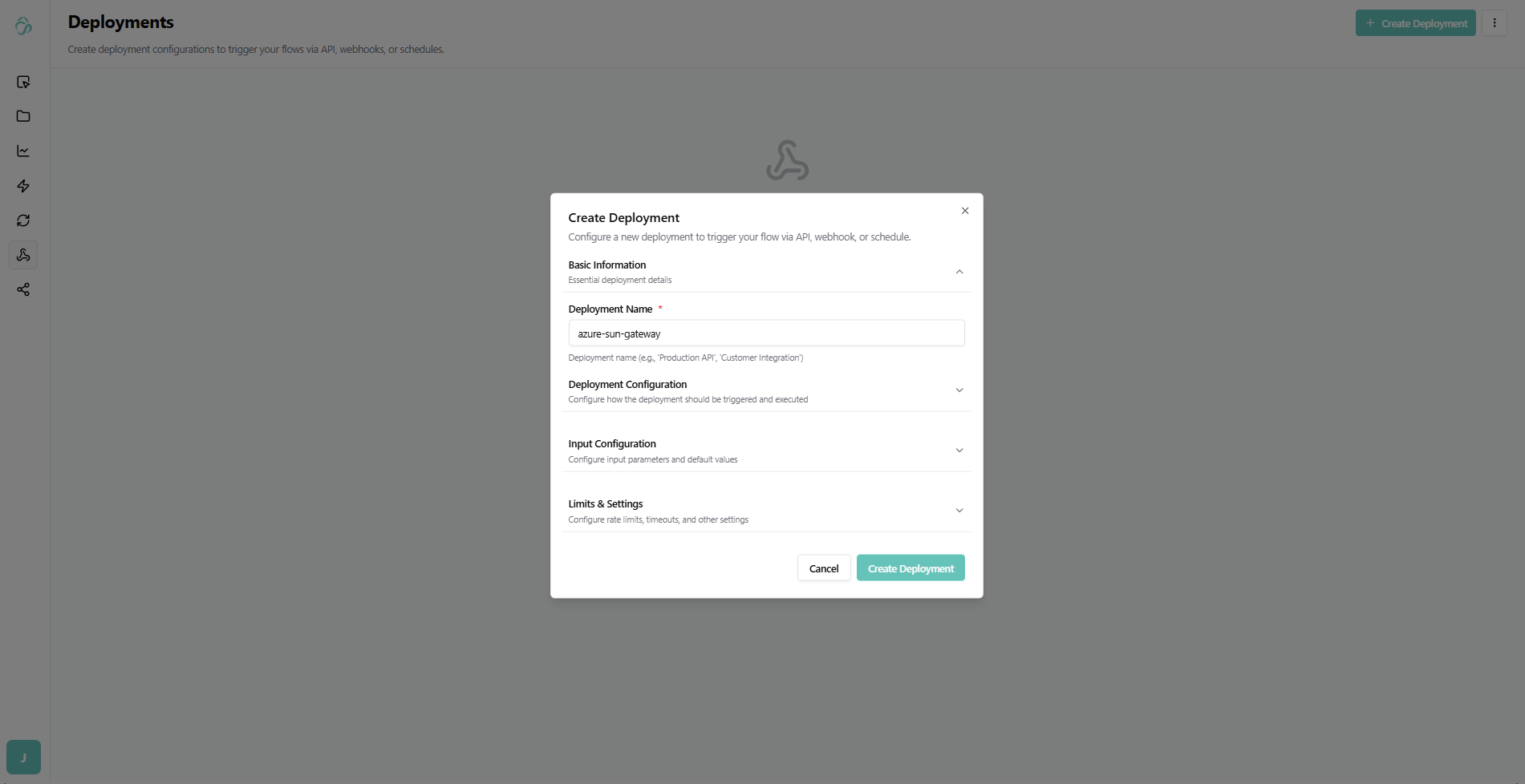 Deploy your flows with a single click by navigating to the deployment tab. Scaling is handled automatically for each deployed flow.