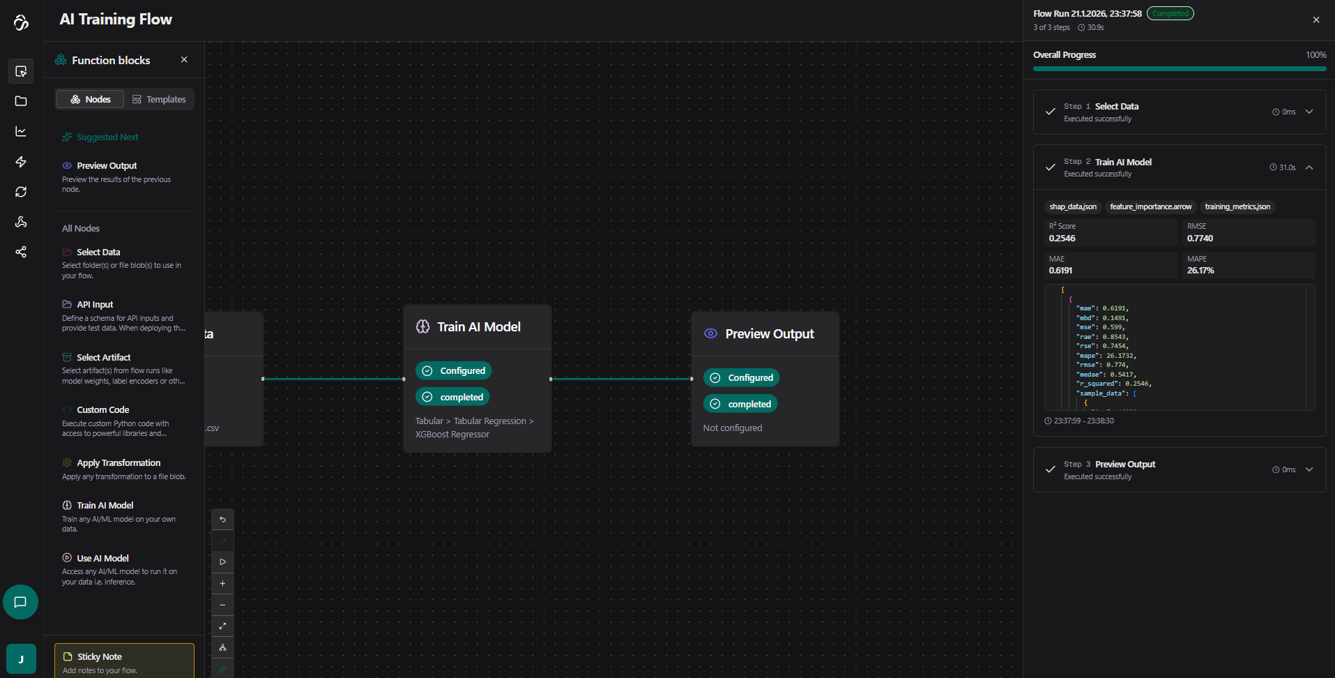 - Select Artifacts: Define what weights, label encoders, or other files AI models use during inference