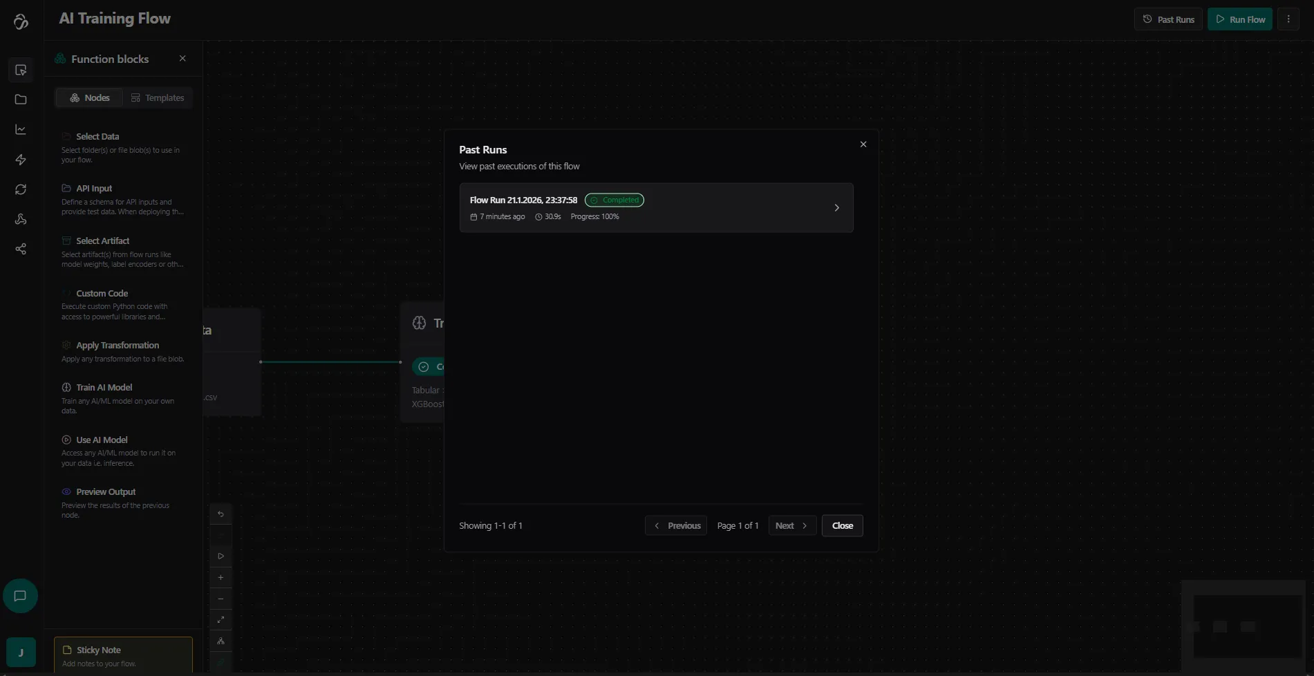 - Select Artifact: Load model weights, encoders, and other saved outputs from previous runs