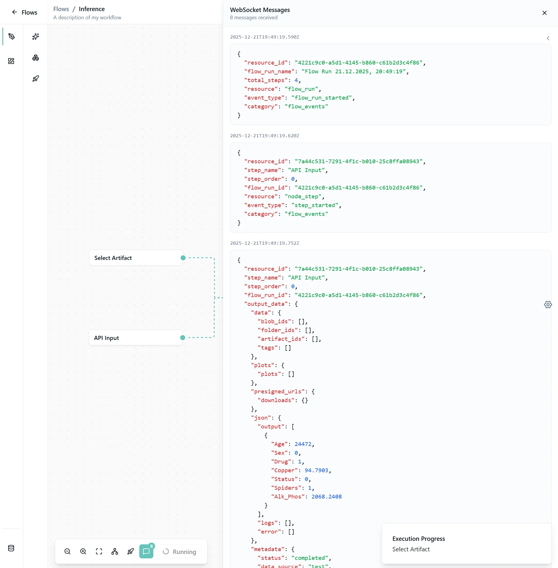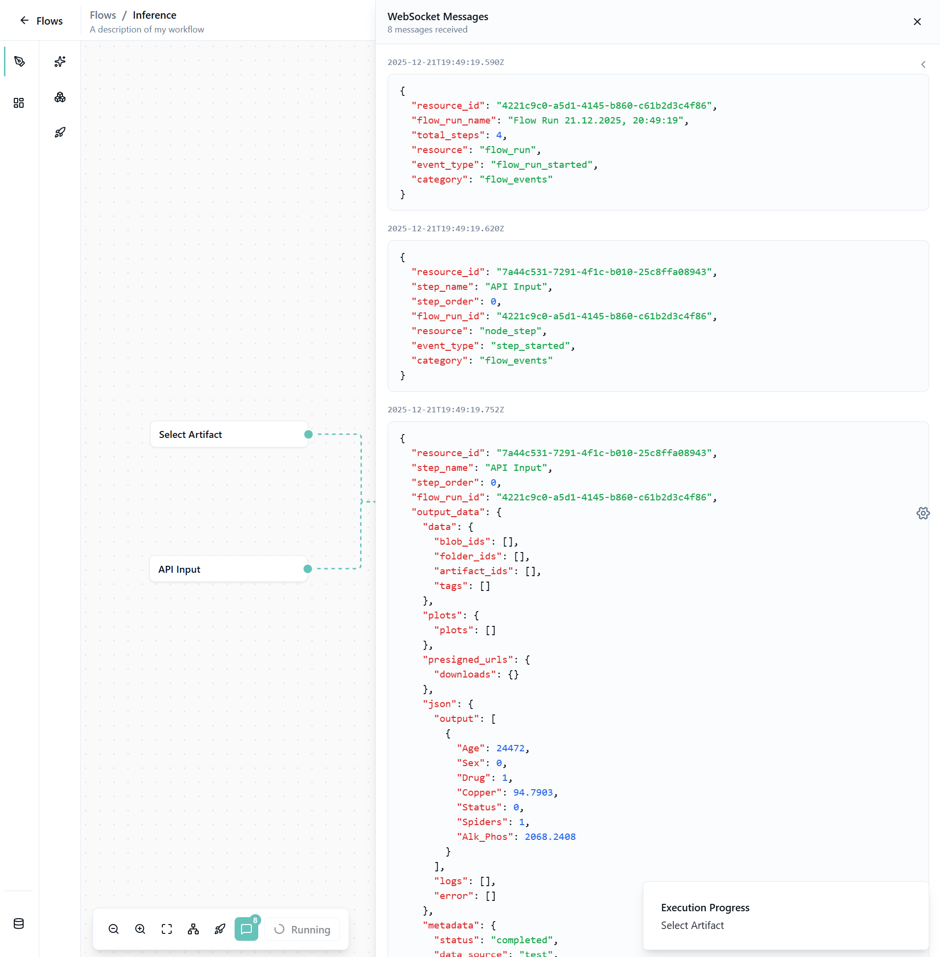 Once inference is complete, the logs will close and you'll see the results in the preview output node.